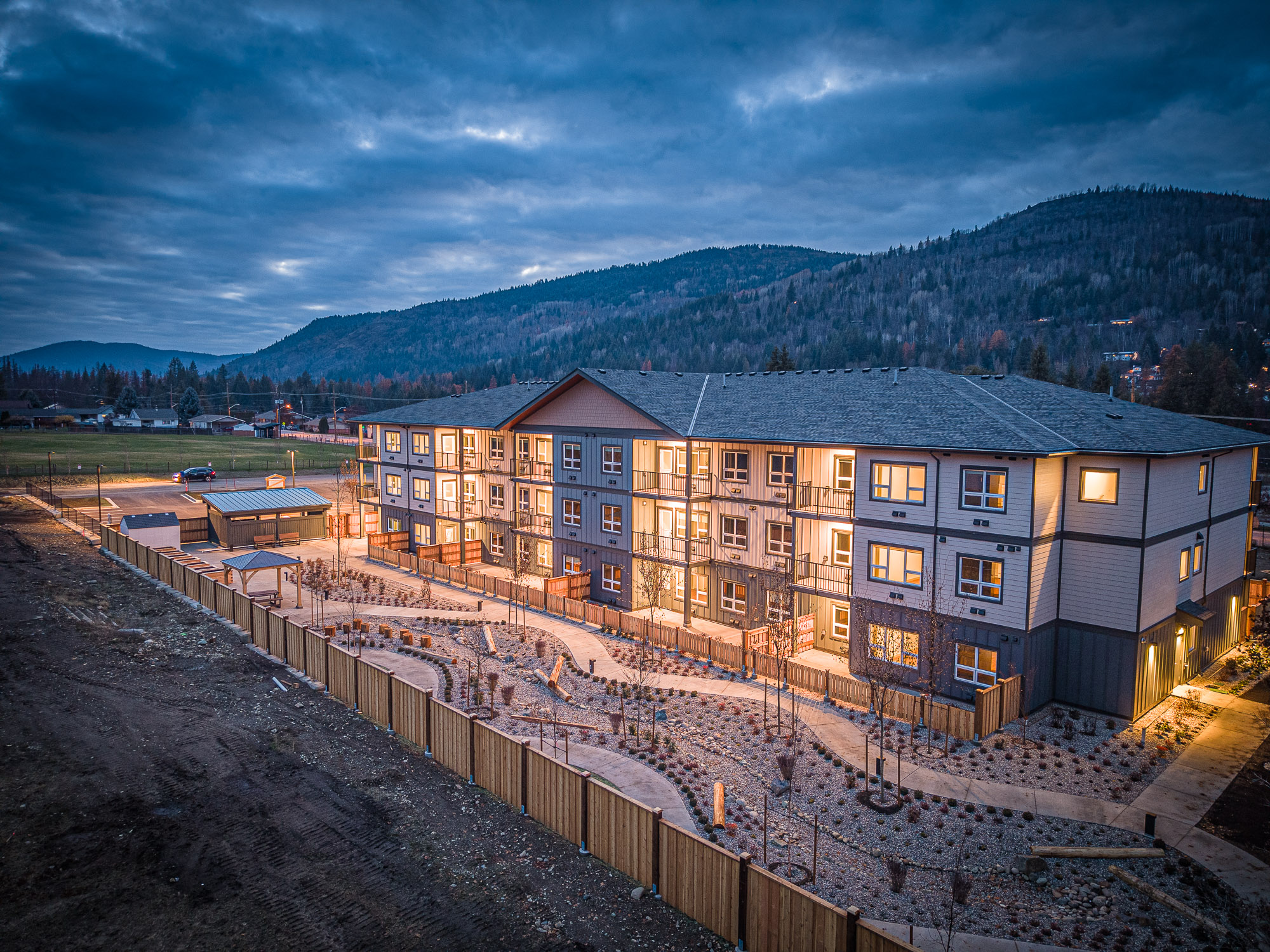 Designed to serve a diverse demographic, including seniors, families, and adults with developmental disabilities, the facility features fully accessible shared spaces to foster community integration. Funding for this project was secured through partnerships with BC Housing, the Columbia Basin Trust, and the Federation of Canadian Municipalities.