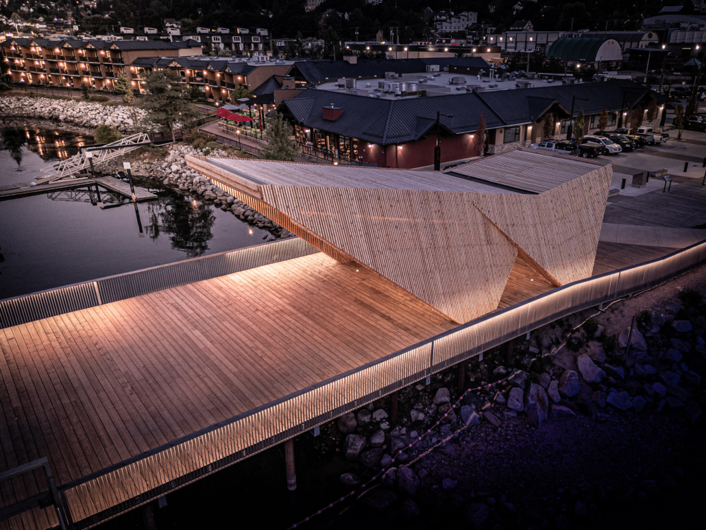 North Mountain Construction managed the overall execution, budget coordination, and site logistics for the project. In addition to overseeing specialized subcontractors for major phases, NMC utilized its own forces to complete the structural concrete formwork, supply 85% of the framing labour, and manage ongoing site facilities and security. Leveraging Nelson’s culture of wood manufacturing, the hybrid wood and steel canopy was expertly crafted to create strategic views and dynamic interplays of light and shadow. The project has received widespread acclaim for its architectural merit and community impact, earning a 2023 Canadian Architect Award of Excellence, a 2025 AZ Award for Urban Design Interventions, and a 2025 IES Illumination Award of Merit.